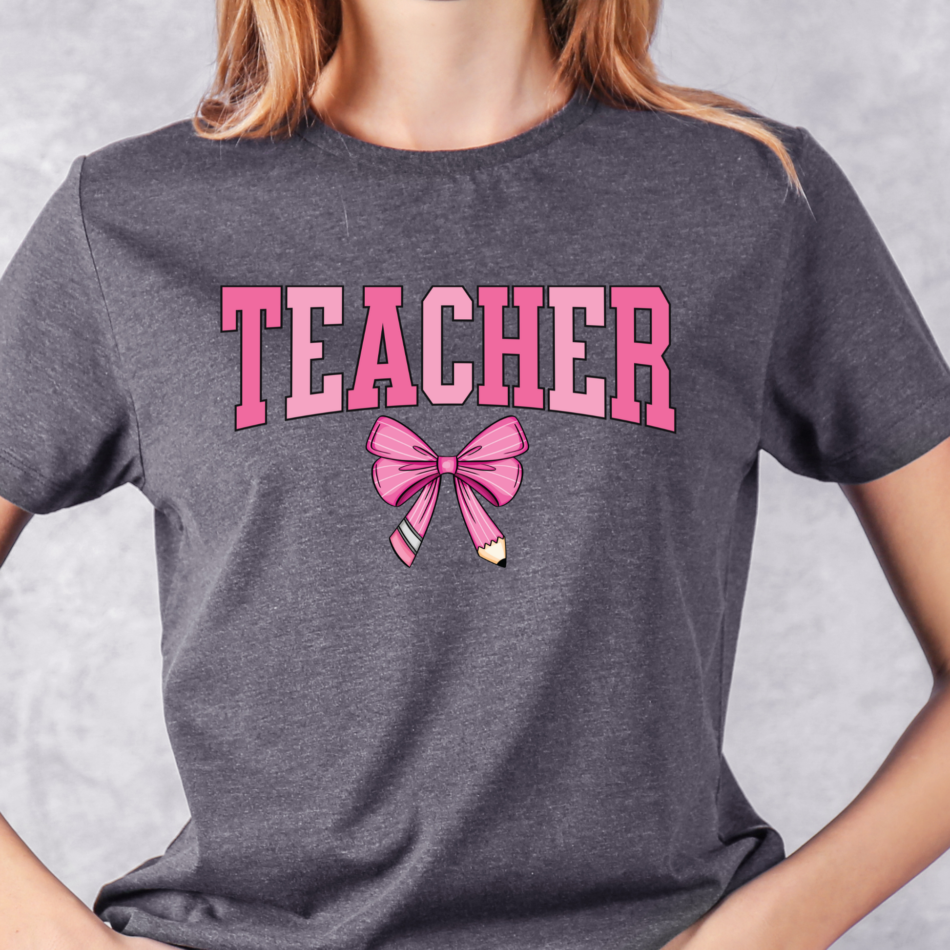 Teacher Pencil Bow (Pink) - Clear Film Transfer